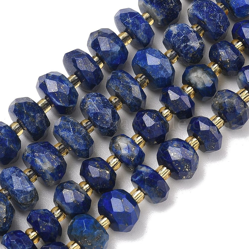 Нитки бусины из натурального ляписа-лазури, рондель, граненые, с бисером