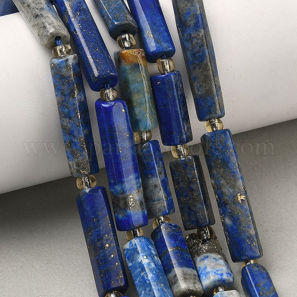 Нитки бусины из натурального ляписа-лазури, граненые, колонка, с бисером