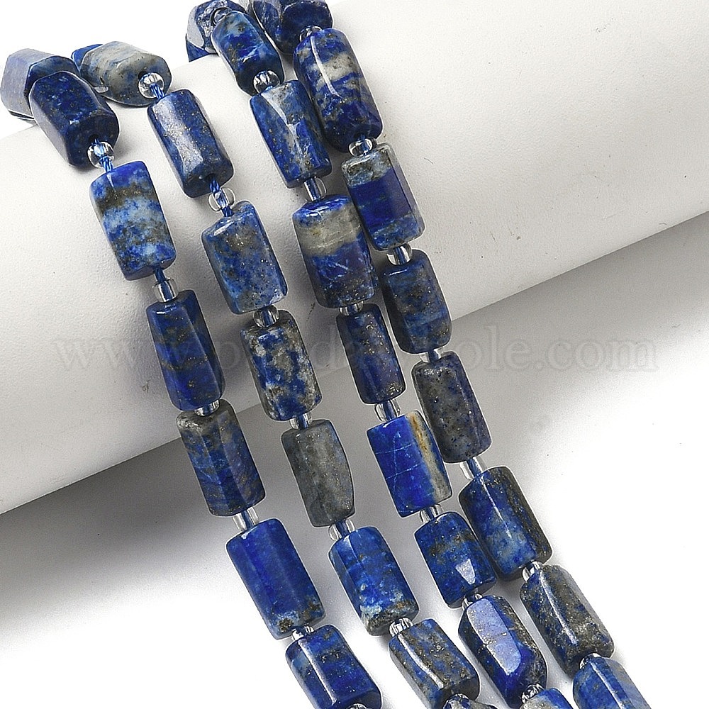 Нитки бусины из натурального ляписа-лазури, колонка, граненые, с бисером
