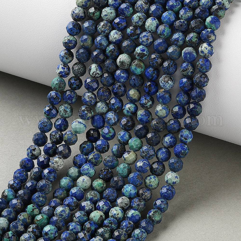Натуральные бусы из хризоколлы и лазурита, граненые, круглые