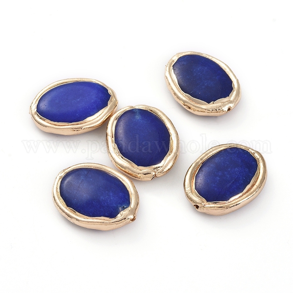 Природный лазурит бисером, с позолоченными краями из латуни, овальные