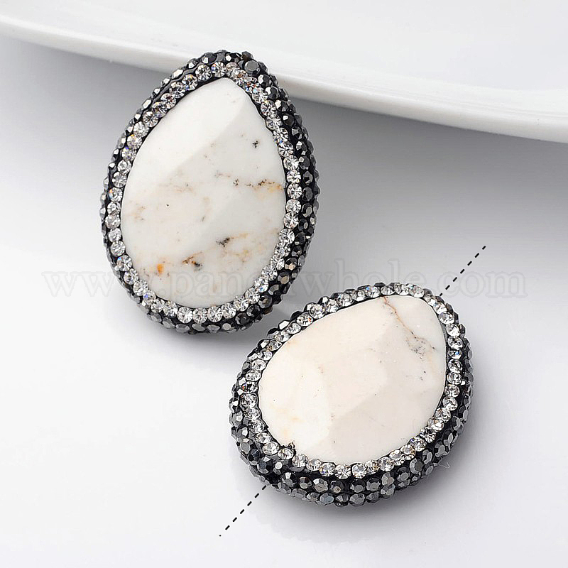 Каплевидные бусины из натурального магнезита, с полимерной глиной горный хрусталь