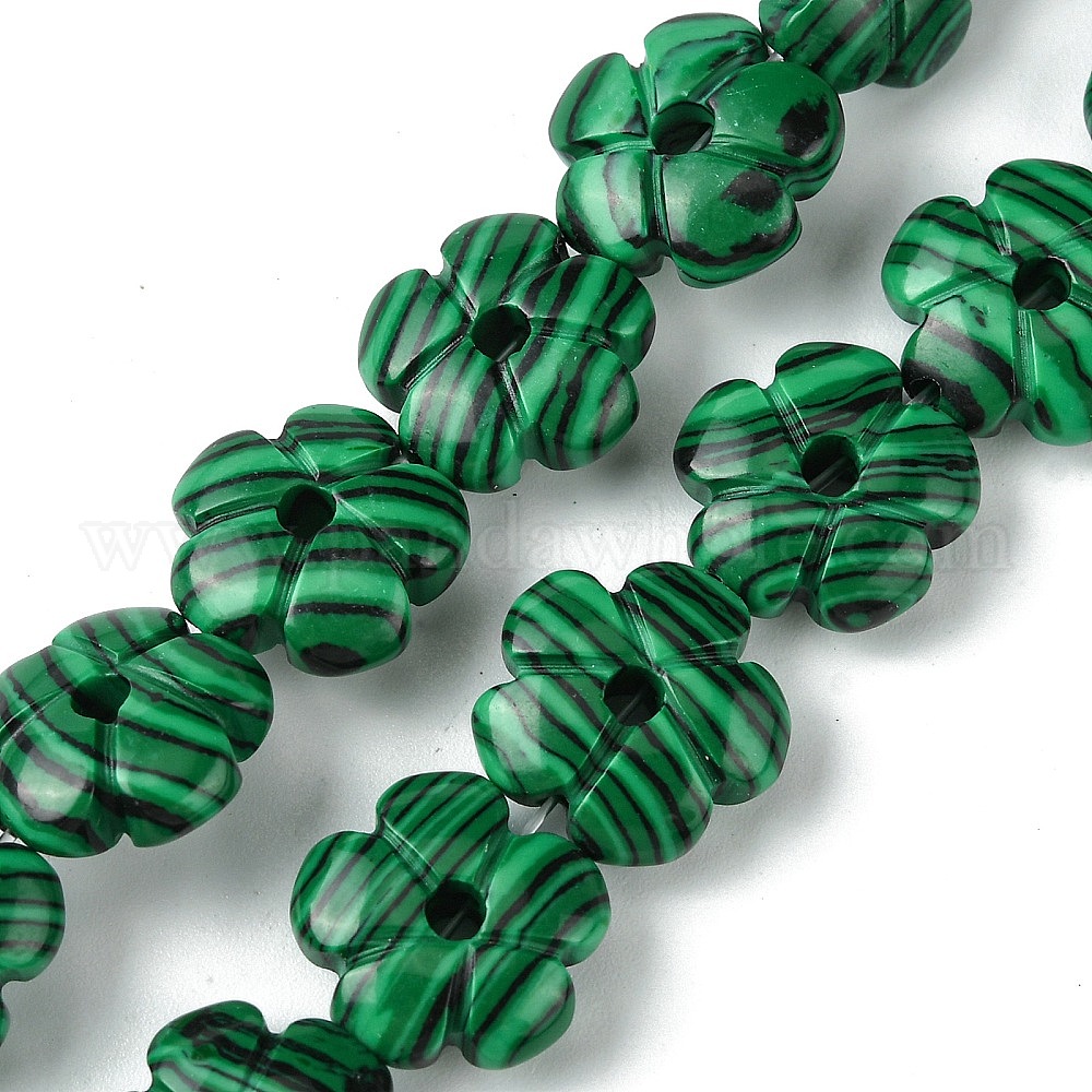 Нити окрашенных синтетических малахитовых бусин, цветок