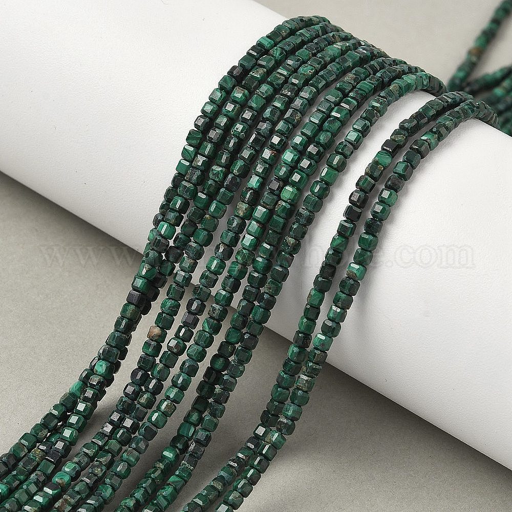 • Малахит Природного малахита бисер нитей, бусины-кубы с настольной огранкой, граненые, 2~2.5x2~2.5x2~2.5 мм, отверстие : 0.5 мм, около 167~181 шт / нитка, 15.20'' (38.6 см) ~ 15.63'' (39.7 см)