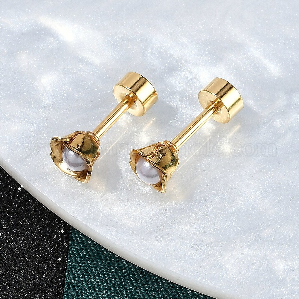 Искусственные беруши из пластика с цветочным рисунком, 304 серьги-гвоздики из нержавеющей стали для женщин