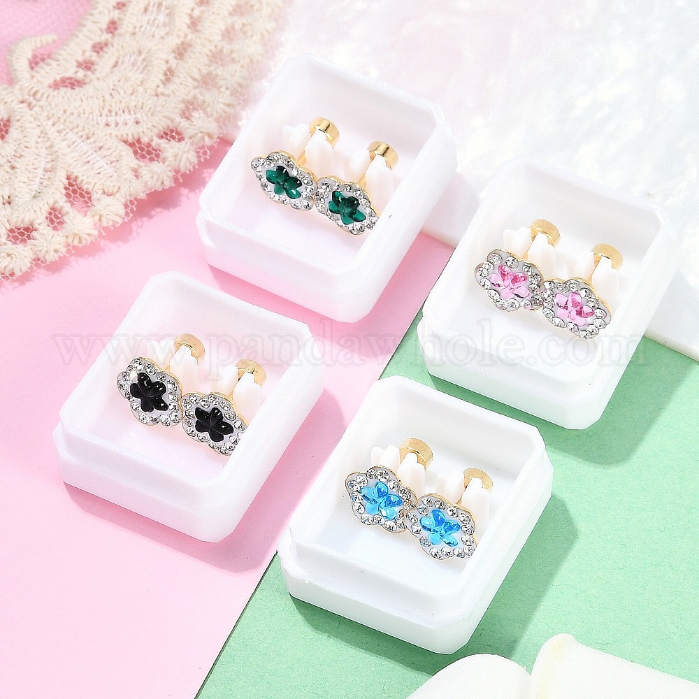 Беруши из цветочного стекла и полимерной глины со стразами, 304 серьги-гвоздики из нержавеющей стали для женщин, золотые