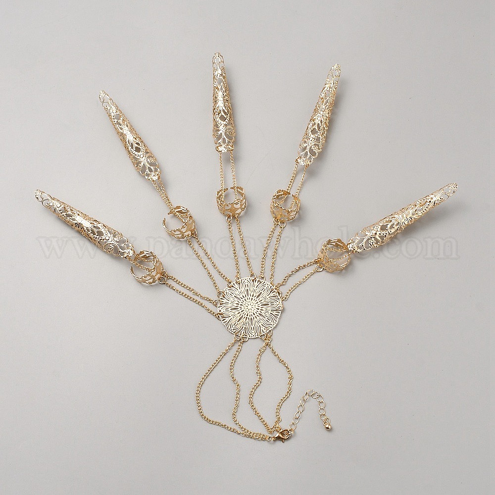 • Light Gold Браслет из сплава цветов с когтями на кончиках ногтей, браслеты с кольцами для женщин, золотой свет, 7-1/2 дюйм (19 см), размер США 7 (17.3 мм)