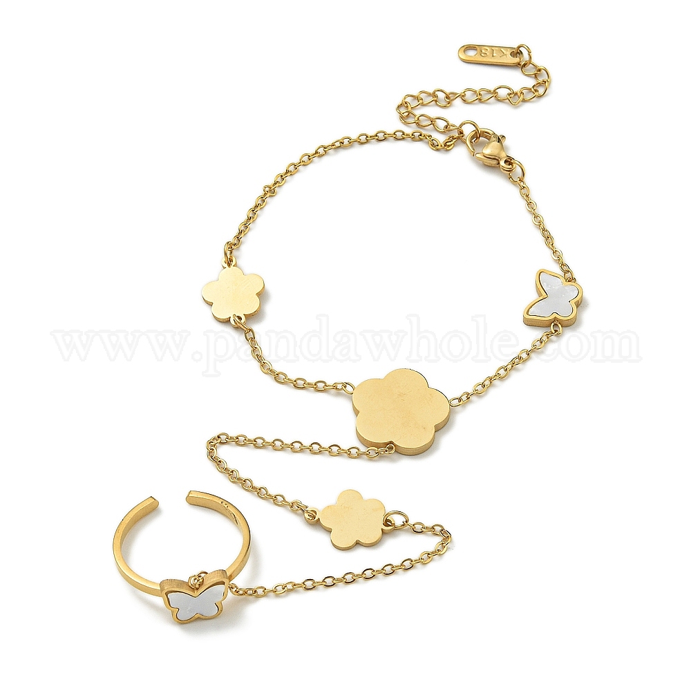 Ионное покрытие (ip) 304 браслеты из нержавеющей стали с синтетическими ракушками и кольцами-бабочками