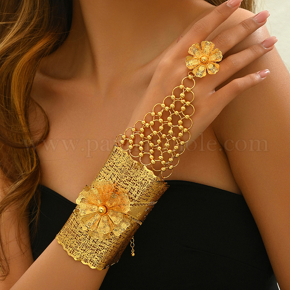 Роскошные браслеты из железных колец для невесты на Ближнем Востоке с цветочным узором, широкий и модный