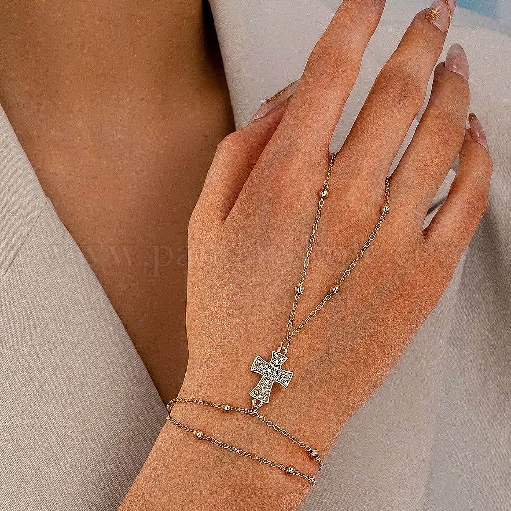 • Золотой Простой стиль 304 браслеты из нержавеющей стали со стразами, крестик, золотые, 6-1/4 дюйм (16 см)