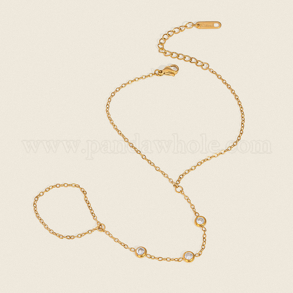 304 трос из нержавеющей стали цепи браслеты, Женские браслеты с плоскими круглыми звеньями из кубического циркония
