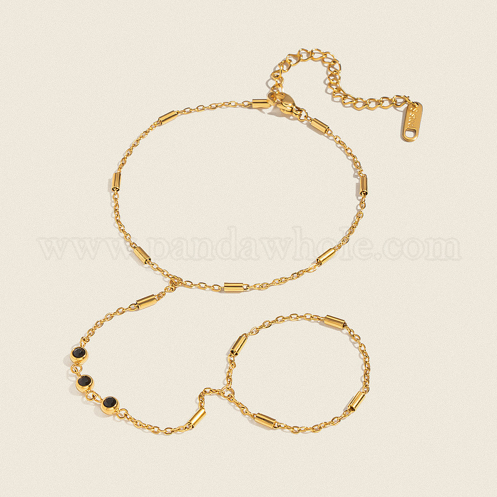 304 Браслеты из нержавеющей стали с микропаве из кубического циркония, Браслеты с колонновидными звеньями для женщин