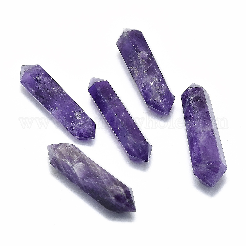 Натуральный лечебный камень аметист, палочка для медитативной терапии, уравновешивающая энергию рейки, нет отверстий / незавершенного, точки с двойным завершением