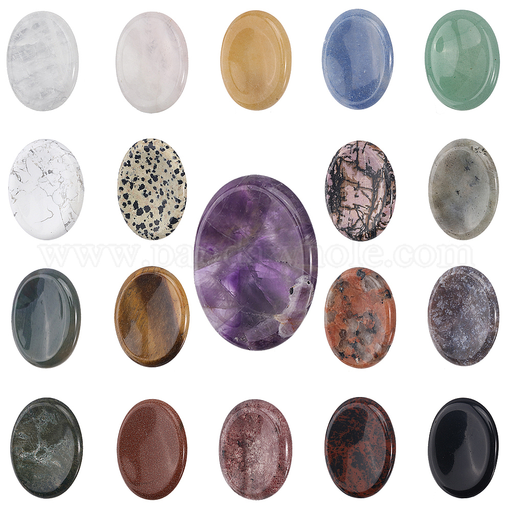 • Смешанные камни 19шт 19 стили овальный натуральный драгоценный камень камень для беспокойства, Массажер с камнями для большого пальца для облегчения беспокойства, 45~45.5x34~35x7~8.5 мм, 1 шт / стиль