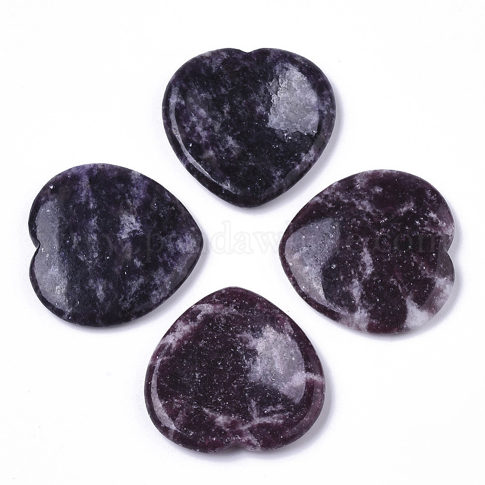 • Лепидолит Натуральный лепидолитовый камень для беспокойства, карманные пальмовые камни, для лечения Рэйки снятие стресса, формы сердца, 39~40x39~40x5~6 мм