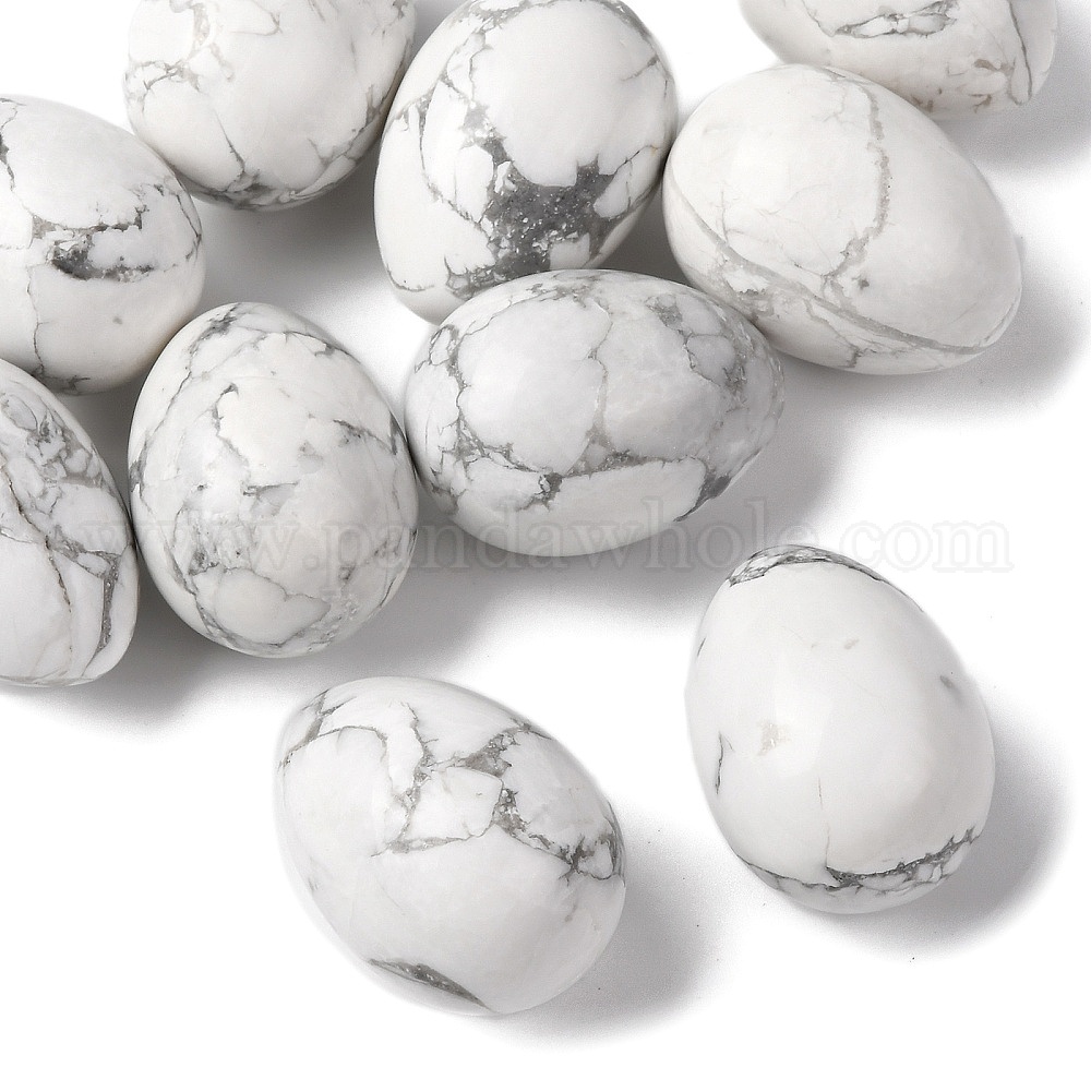 • Говлит Натуральный гаулитовый яичный камень, Целебный карманный камень для ладони, для снятия тревоги, медитации, пасхального декора., 29.5~30.5x21.5~22 мм