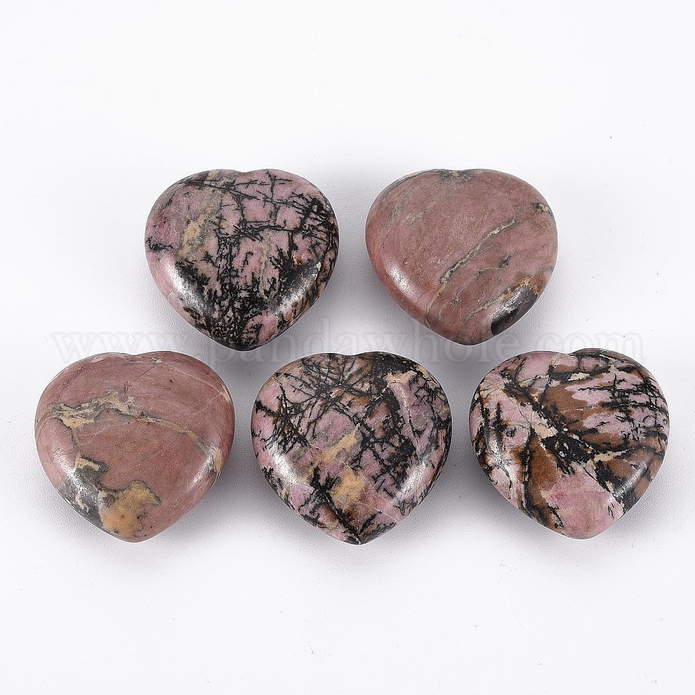 • Родонит Природный камень любви сердце родонит, карманный пальмовый камень для балансировки рейки, 30x30.5x12.5 мм