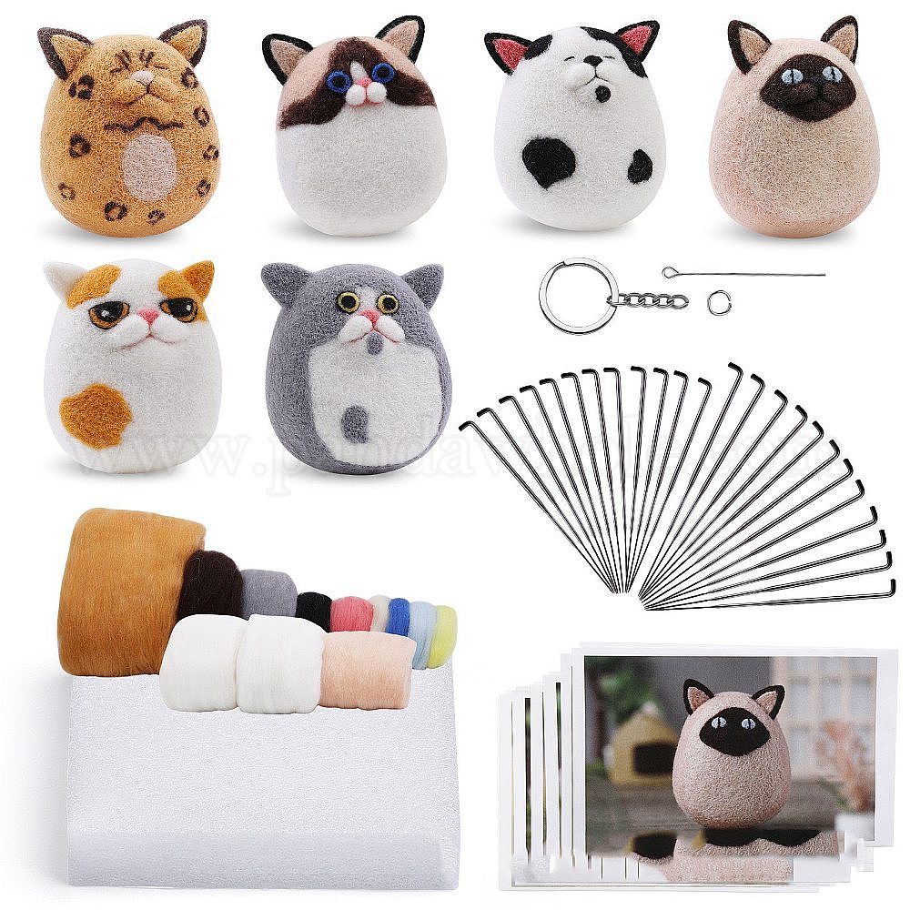 Наборы для валяния в форме кошки, с металлическим брелоком, Кольца прыжок, шерсть и игла для прокалывания (02Y4WA)