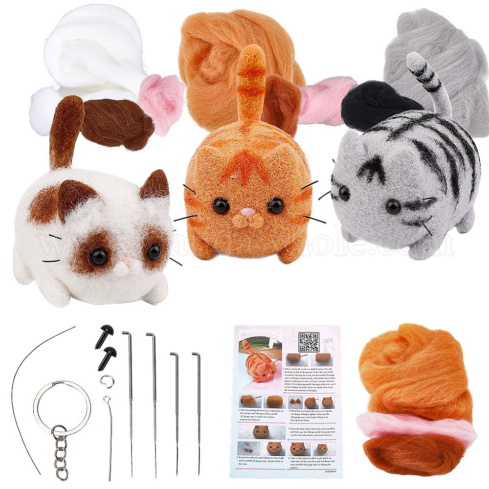 Набор для валяния кошки иглами, включая инструкции, пена, иглы, шерсть, Брелок, наглазники, Перейти кольцо, мел, Кабошоны