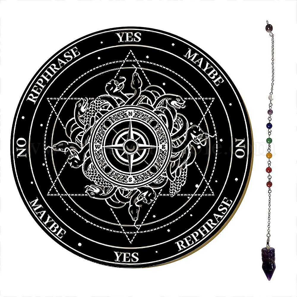 Смешанный узор маятниковая доска лозоходство ожерелье гадание набор для самостоятельного изготовления, включая фанерную вывеску, маятник биолокации чакры природного аметиста, чёрные