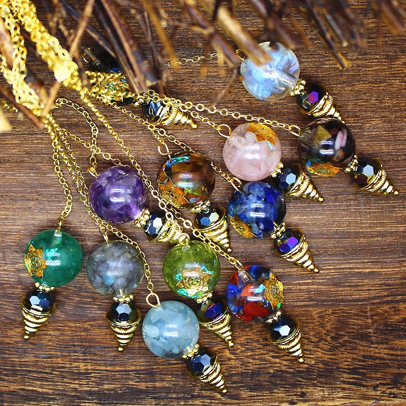 Большие подвески из натурального и синтетического драгоценного камня, неокрашенными, с позолоченными металлическими находками, конус очарование
