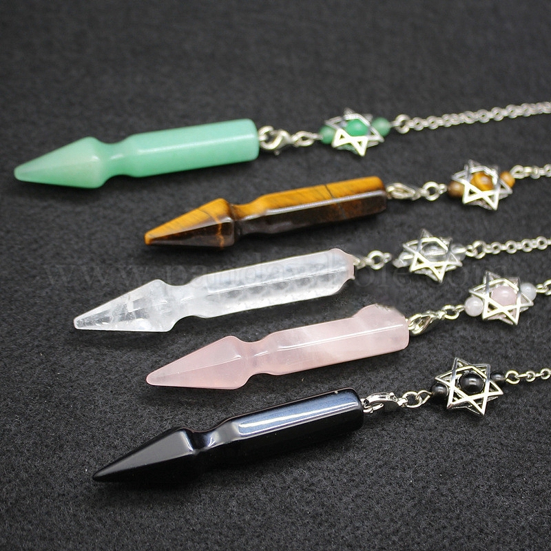 • Зеленый Авантюрин Натуральный кристалл кварца, неокрашенными, с металлической фурнитурой с платиновым покрытием, конус очарование, платина, 200 мм