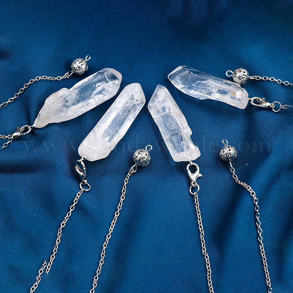 Самородки натуральный кварцевый кристалл заостренные маятники для биолокации, с металлической фурнитурой платинового цвета
