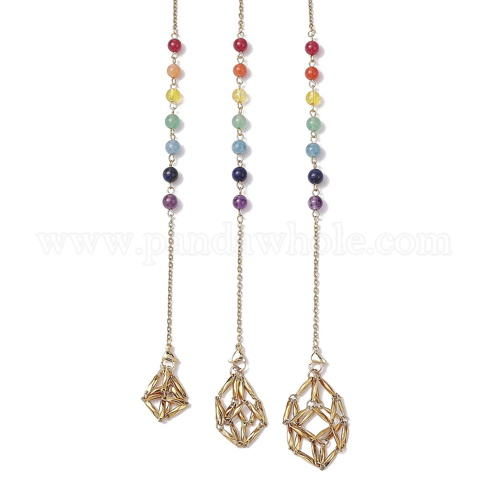 3 шт. 3 стили 304 цепочка из нержавеющей стали макраме мешочек пустой держатель для камней маятники для биолокации, с круглыми бусинами из натуральных и синтетических драгоценных камней чакры