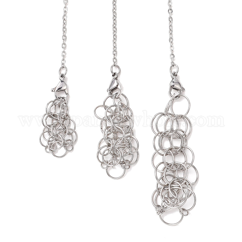• Нержавеющая Сталь Цвет 3 шт. 3 стили 304 цепочка из нержавеющей стали макраме мешочек пустой держатель для камней маятники для биолокации, цвет нержавеющей стали, 220~250 мм, отверстие : 2 мм, 1 шт / стиль