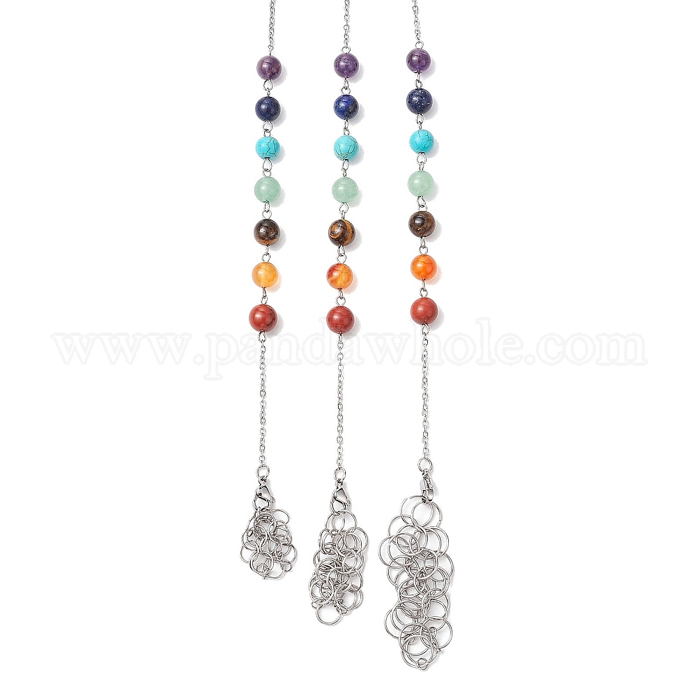 • Нержавеющая Сталь Цвет 3 шт. 3 стили 304 цепочка из нержавеющей стали макраме мешочек пустой держатель для камней маятники для биолокации, с круглыми бусинами из натуральных и синтетических драгоценных камней чакры, цвет нержавеющей стали, 220~250 мм, отверстие : 10 мм, 1 шт / стиль