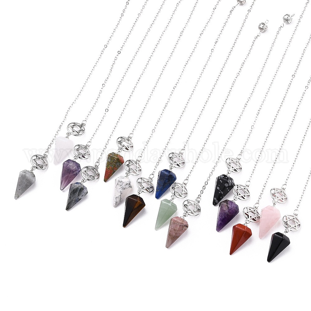 • Смешанные камни Шестиугольные заостренные биолокационные маятники из смешанных натуральных и синтетических драгоценных камней, латунная фурнитура с платиновым покрытием, звезда Дэвида и конуса, 240x2x0.1 мм
