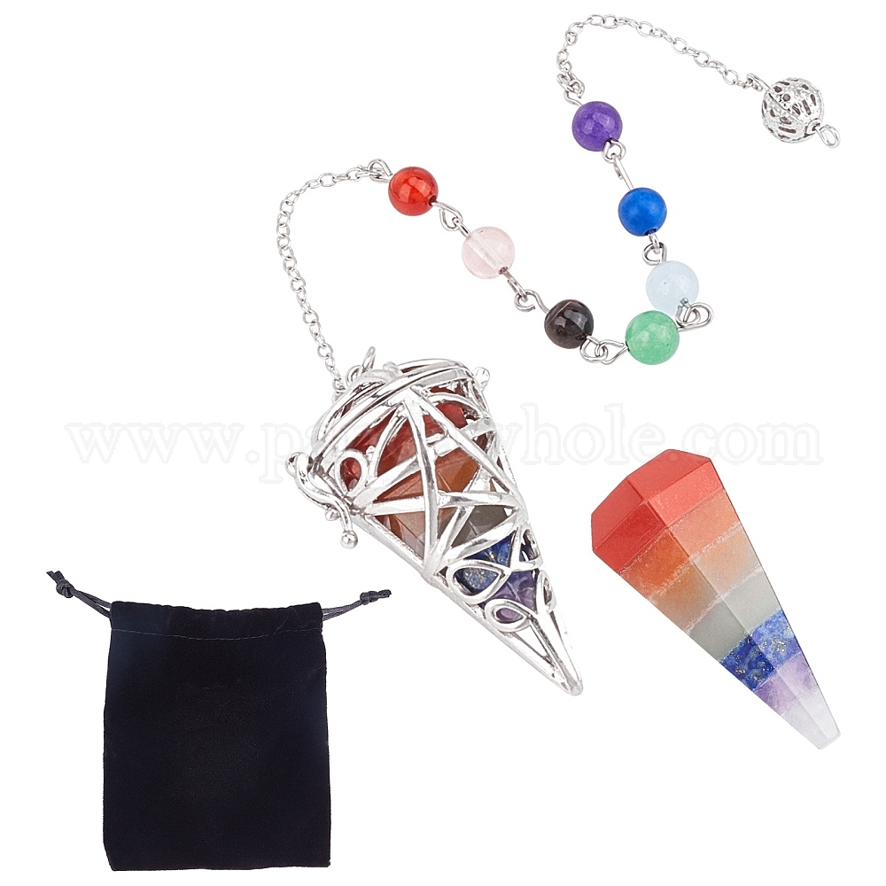 • Смешанные камни Синтетические смешанные драгоценные камни конусные маятники для биолокации, с платиновой и латунной фурнитурой, 10-1/2 дюйм (26.67 см), бусина : 6~8 mm, Кулон : 46.17x22.44 мм, 1шт / сумка