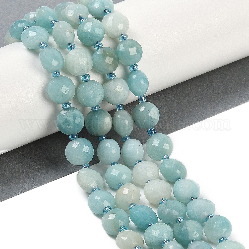 Природных амазонит бисер нитей, граненые, плоско-круглые, с бисером