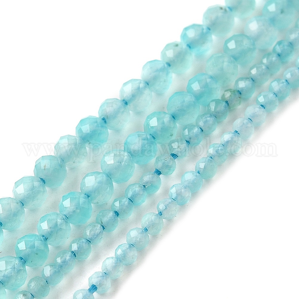 Природных амазонит бисер нитей, граненые, круглые (032WFP)