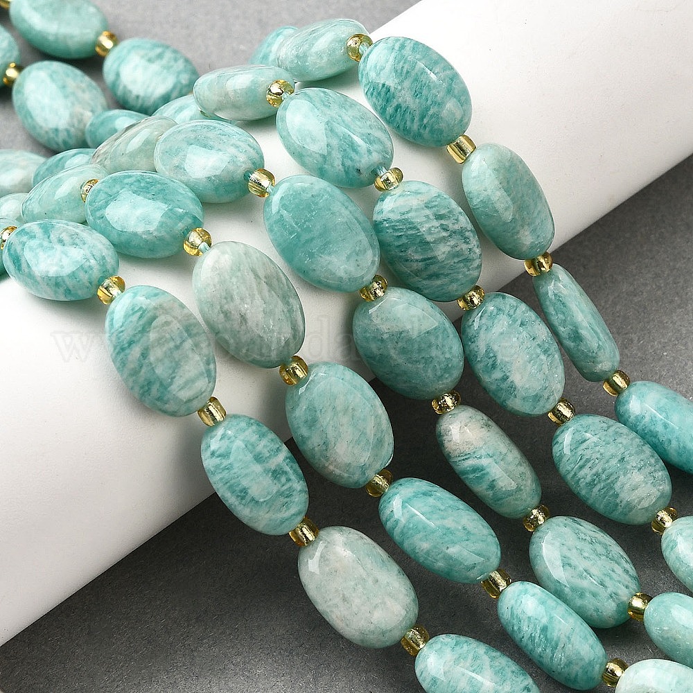 Природных амазонит бисер нитей, с бисером, Плоско-овальные