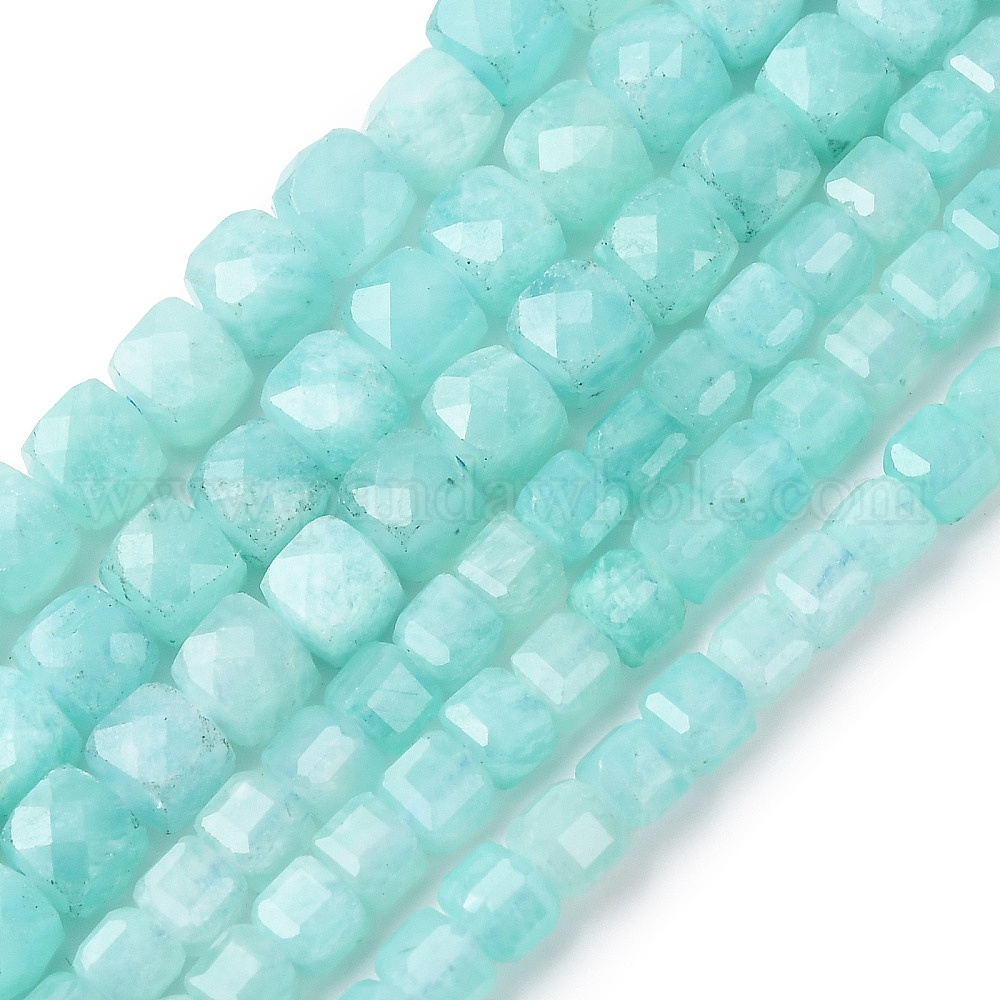 Природных амазонит бисер нитей, граненые, кубические (03955C)