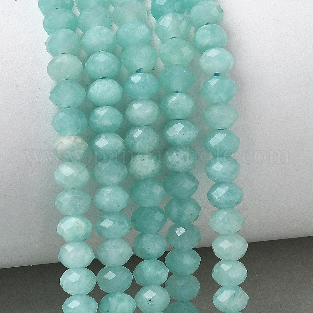 • Амазонит Природных амазонит бисер нитей, рондель, граненые, 5~5.5x3~4 мм, отверстие : 0.9 мм, около 105 шт / нитка, 15.35'' (39 см)