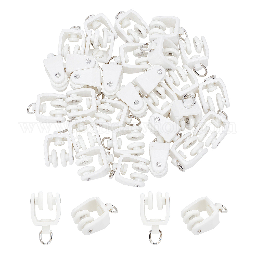• Белый 30шт. пластиковые ролики для карнизов, направляющая для драпировки, скользящая направляющая для окон, направляющая для душевой занавески, с алюминиевым кольцом, белые, 33x18x13 мм, отверстие : 6x5.5 мм