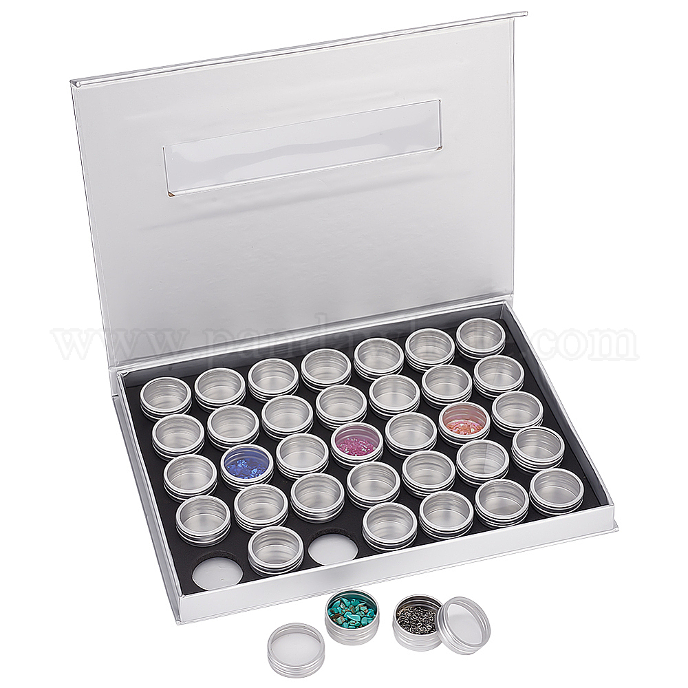 35Набор алюминиевых жестяных банок с колоннами, Контейнеры для хранения украшений для ногтей из алюминиевой банки, с прямоугольной коробкой