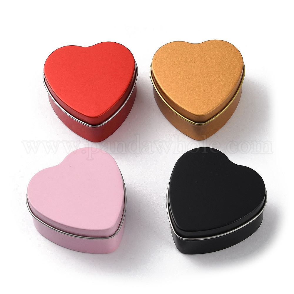 • Красный Жесть железные банки для свечей в форме сердца, подарочные коробки с крышкой, коробка для хранения, красные, 6x6x2.8 см