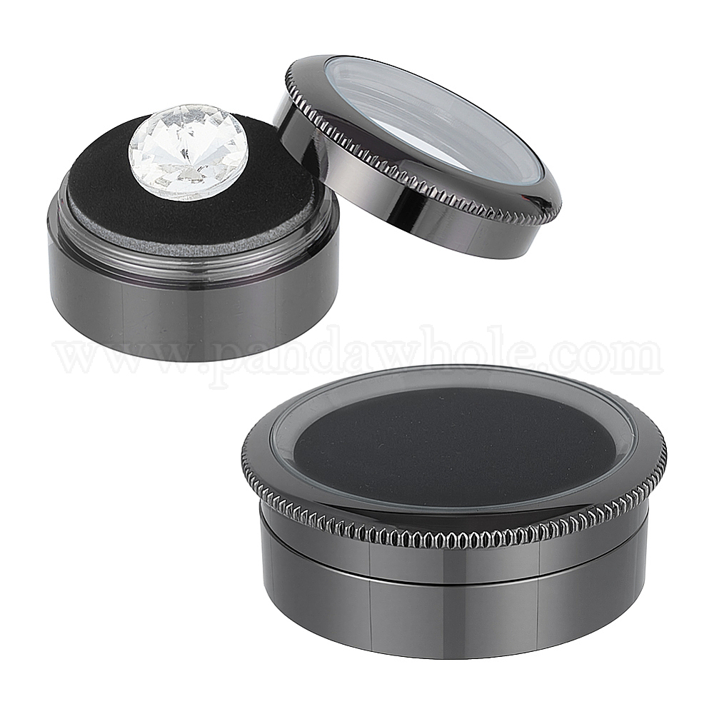 2 шт. 2 стили, коробки для демонстрации драгоценных камней из сплава с россыпью бриллиантов, стеклянные верхние витрины для ювелирных изделий с губкой внутри, плоско-круглые