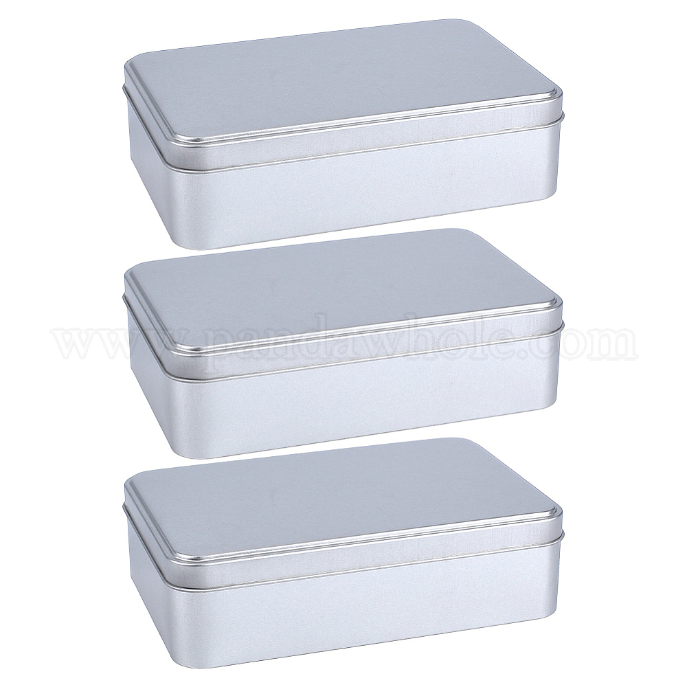 • Платина Прямоугольные жестяные металлические ящики для хранения с крышкой, платина, 18x12x5.05 см