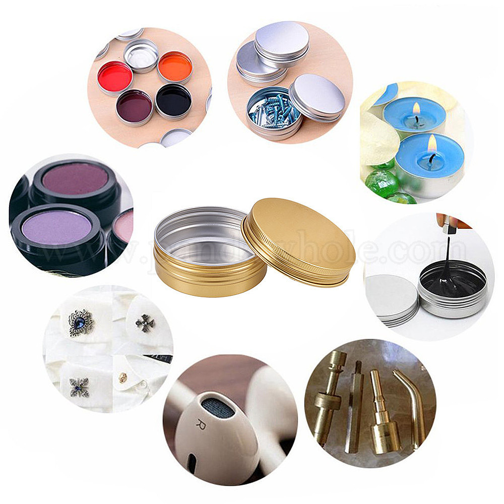 • Золотой Круглые алюминиевые жестяные банки, алюминиевая банка, контейнеры для хранения косметики, свечи, конфеты, с винтовой крышкой, золотые, 7.1x2.5 см, мощность: 60мл, 15 шт / коробка