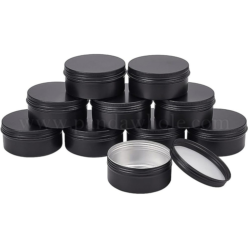 • Черный Цвет Металла Круглые алюминиевые жестяные банки, алюминиевая банка, контейнеры для хранения косметики, свечи, конфеты, с винтовой крышкой, металлический черный , 8.6x3.9 см, емкость: 150 мл, 10 шт / коробка