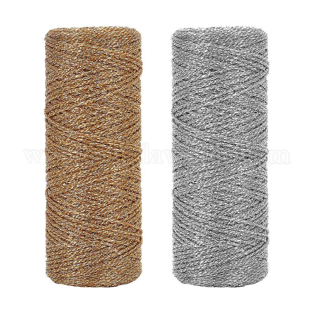 2 рулоны 2 цвета полиэстер плетеный металлический шнур, для упаковки подарков, круглые