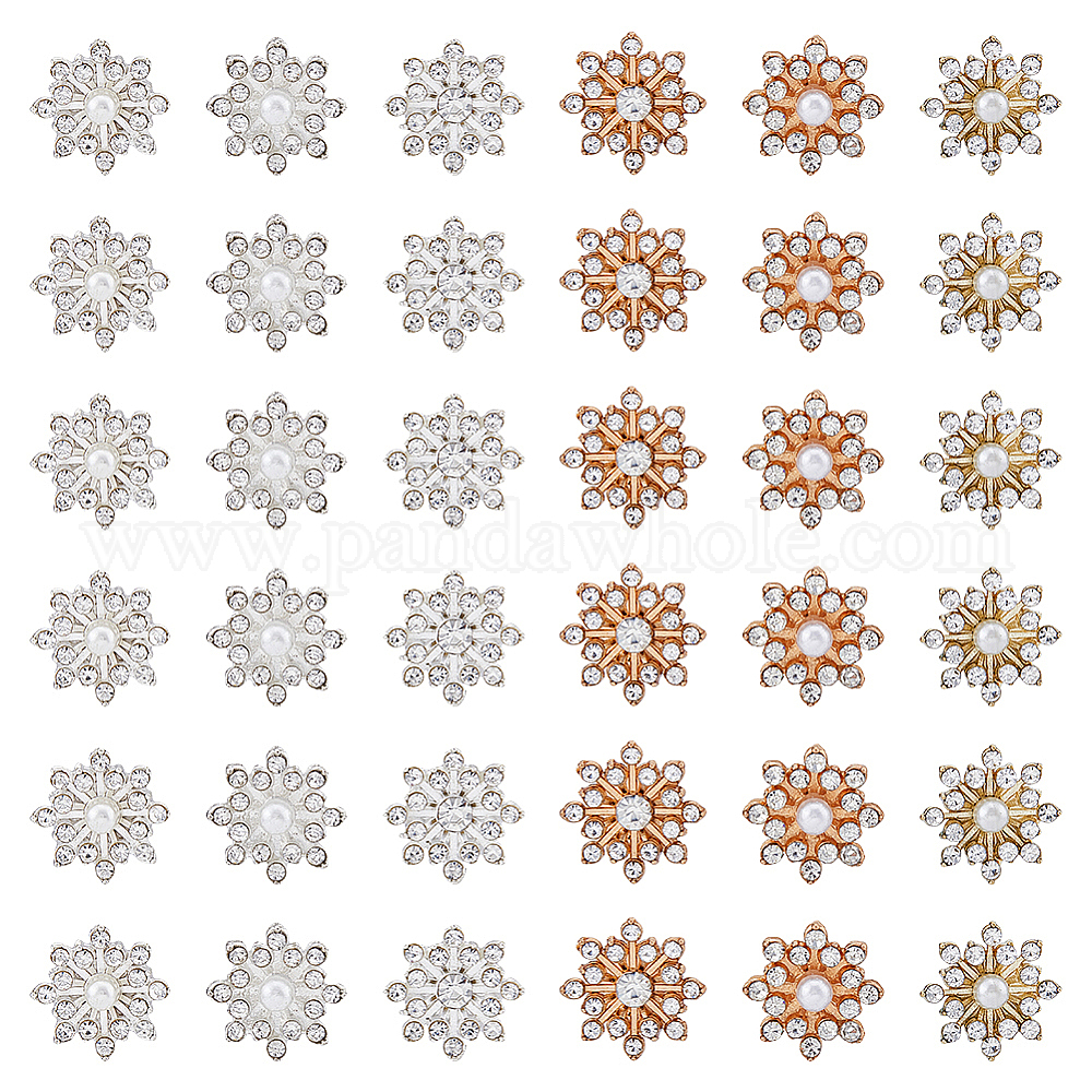 60шт 6 кабошоны со стразами в стиле сплава, с пластиковой имитационной жемчужиной, снежинка