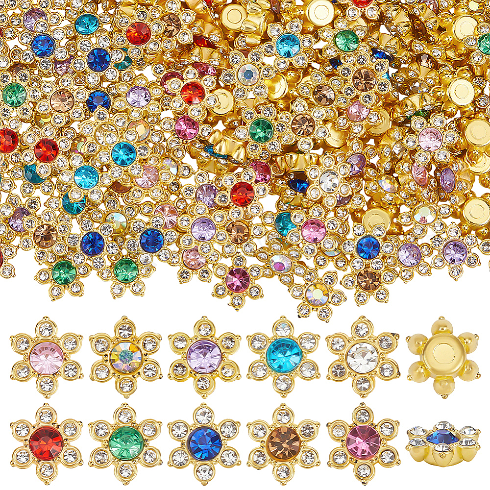 250шт 10 цвета сплав горный хрусталь кабошоны, цветок