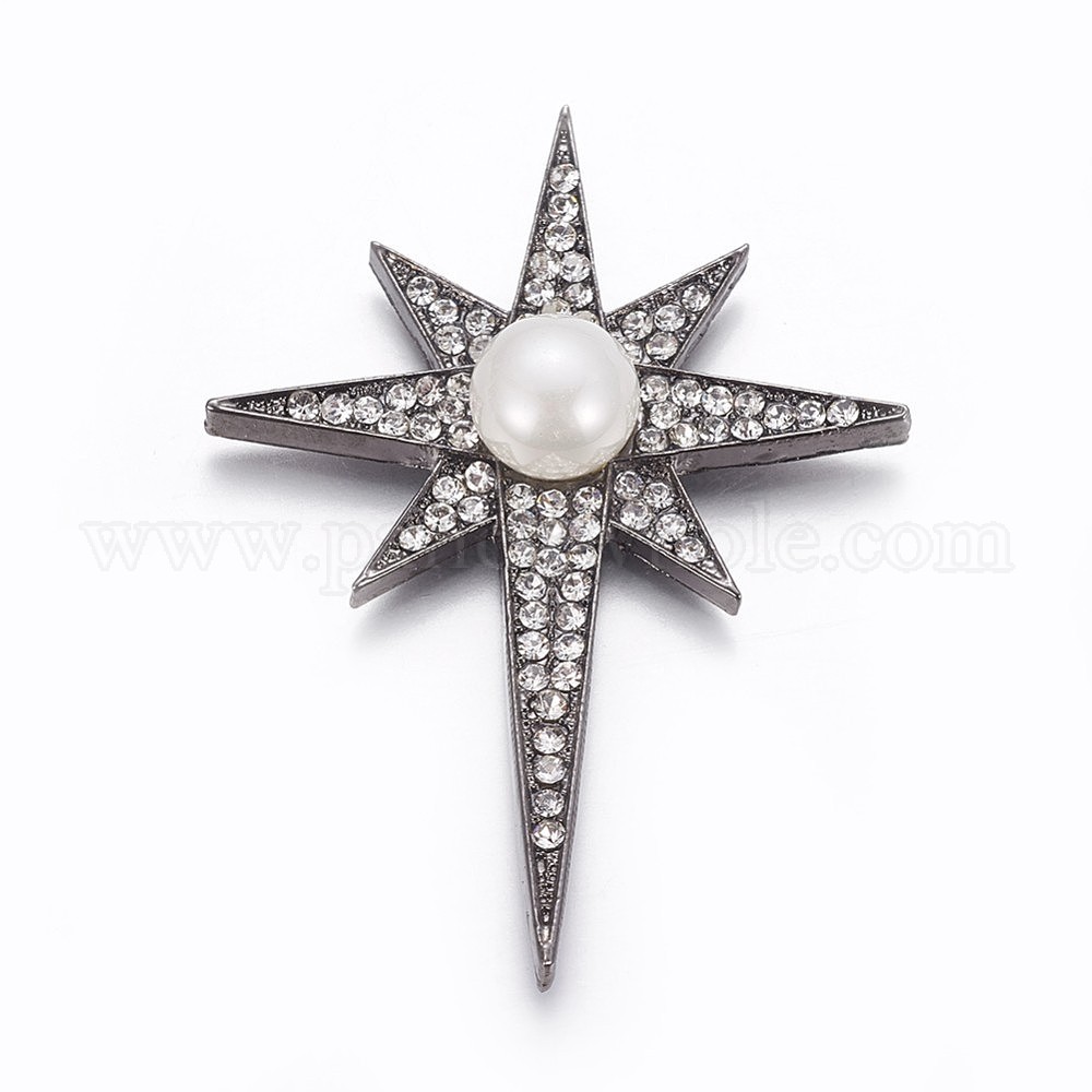 Латунные кабошоны, с оболочкой жемчуг и горный хрусталь, Сияющая звезда