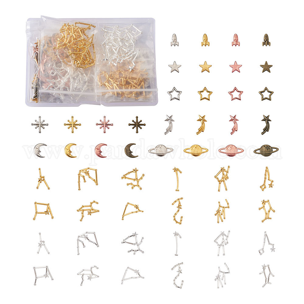 двенадцать созвездий кабошонов из цинкового сплава: 20~26x11~18.5x3~3.5 мм; 12 шт / комплект, 2 цветов, 2 комплектов / цвет, 4 наборы;