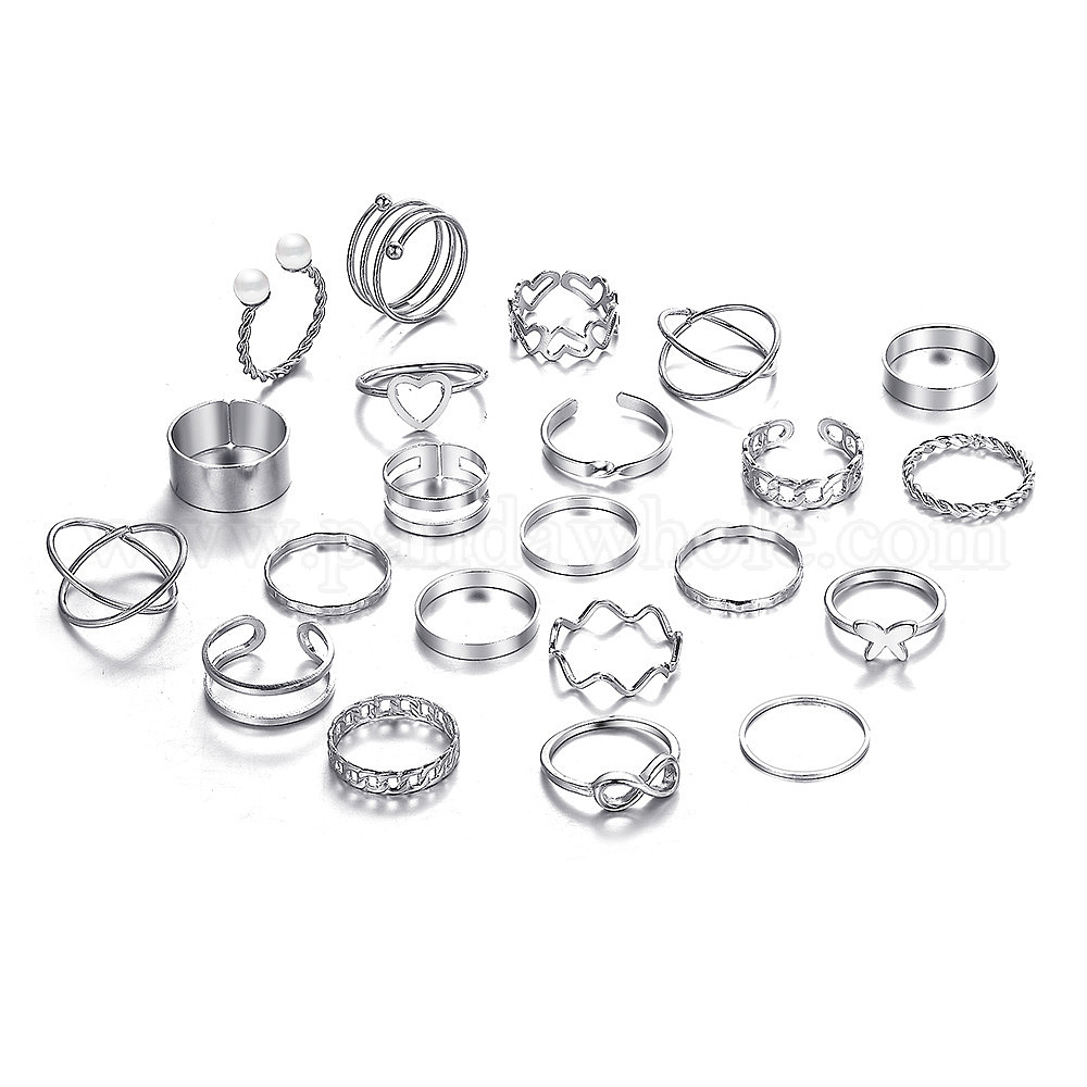 22 шт. 22 стиль сердце и бабочка и крест-накрест и волны набор колец из сплава, штабелируемые кольца с искусственным жемчугом для женщин